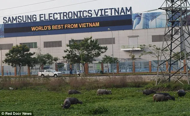 Dòng điện thoại Galaxy Note 7 vừa được Samsung thu hồi do nổ pin có một nhà máy lắp đặt ở Bắc Ninh, Việt Nam. Ngay ngoài nhà máy này là những cánh đồng lúa nơi người nông dân làm việc mới mức lương chỉ hơn 800.000 VNĐ một tuần, tờ Daily Mail đưa tin.