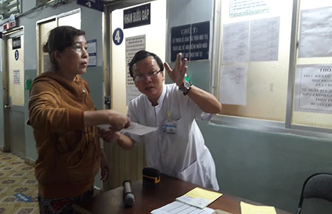 Người bệnh đóng 60.000 đồng khi khám từ 5 giờ sáng thay vì đóng 20.000 đồng như giờ hành chính. Ảnh: HÀ PHƯỢNG