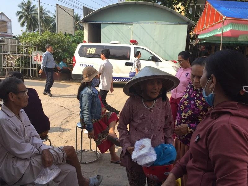 Người dân huyện Hoài Nhơn được khám bệnh và nhận các suất ăn miễn phí. Ảnh: Hội Đồng hương Tam Quan cung cấp.