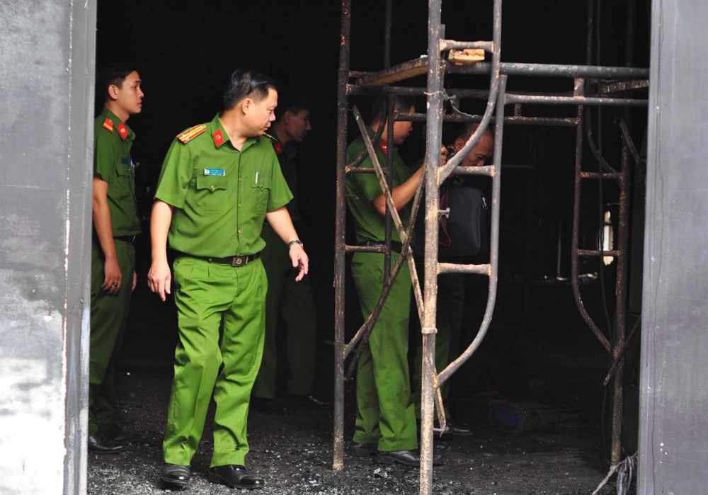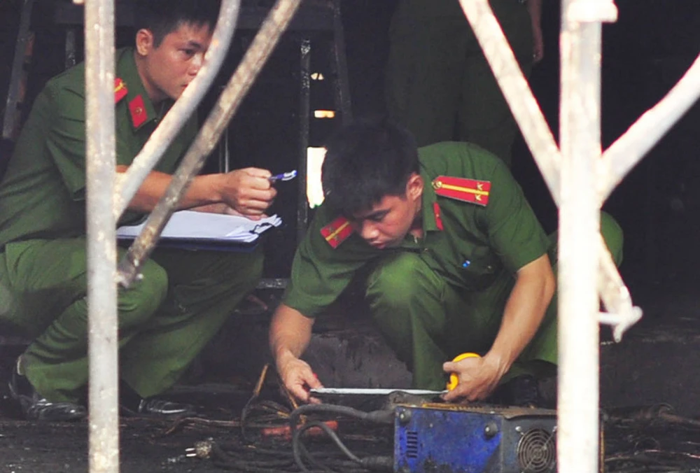 Lực lượng công an khám nghiệm hiện trường. Ảnh: VH