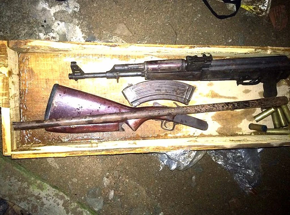 Nhận được tin báo, công an tới khống chế, phát hiện trên người Sơn có hai quả lựu đạn. Khám xét khẩn cấp nơi ở của Sơn, một khẩu súng AK, một súng Klip, 32 viên đạn các loại, một bình xịt cay, một dao nhọn tự chế được phát hiện và thu giữ.
