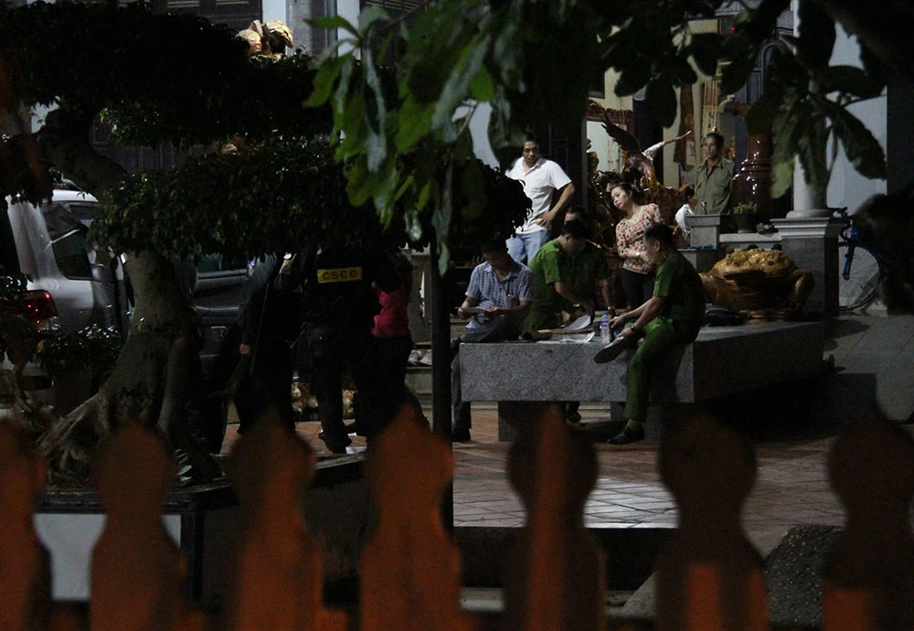 Tại hiện trường, cảnh sát phong tỏa các ngả vào căn nhà. Việc khám xét đến khuya mới xong.