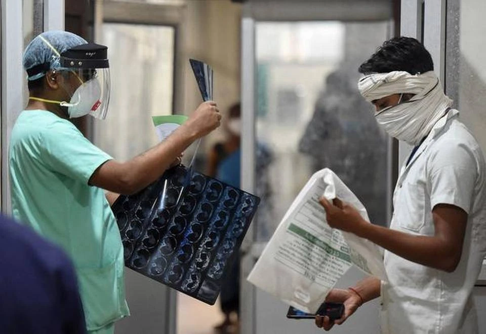 Bác sĩ kiểm tra bản chụp phim phổi của một bệnh nhân COVID-19 ở Ấn Độ. Ảnh: AFP