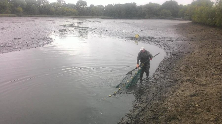 Người ta thông vùng nước này với một đường mương có vách ngăn được xây trám xi măng. Mục đích là để khi lùa cá vào mương công nhân chỉ cầm vợt để vớt cá, như vậy bùn sẽ không làm cá bị bẩn.