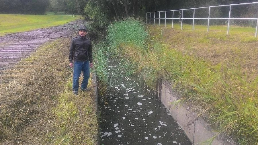Chú Ánh chỉ cho tôi hệ thống mương thông các hồ với nhau.