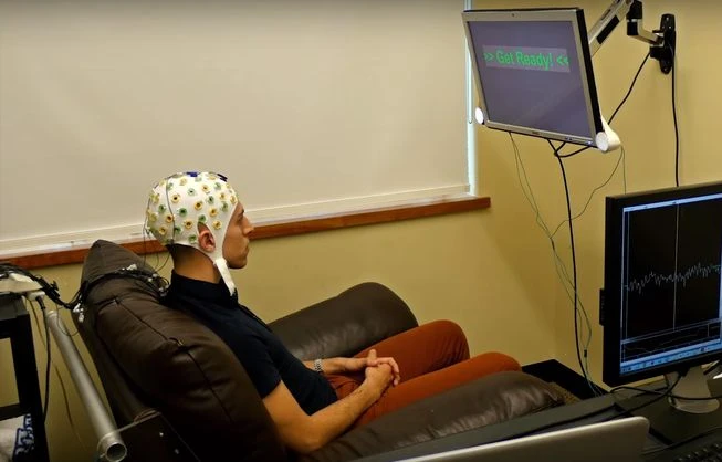 Người hồi đáp trả lời bằng ý nghĩ. (Ảnh: Đại học Washington/ YouTube)