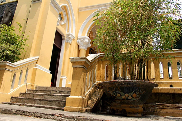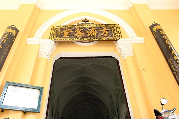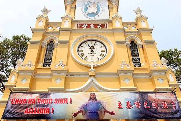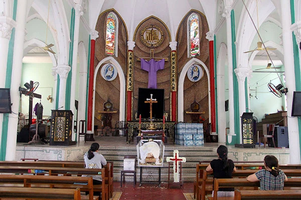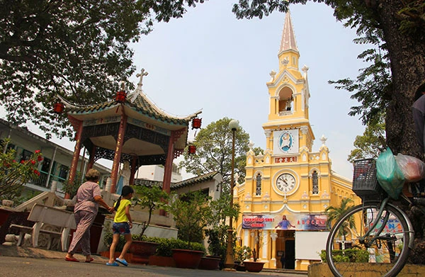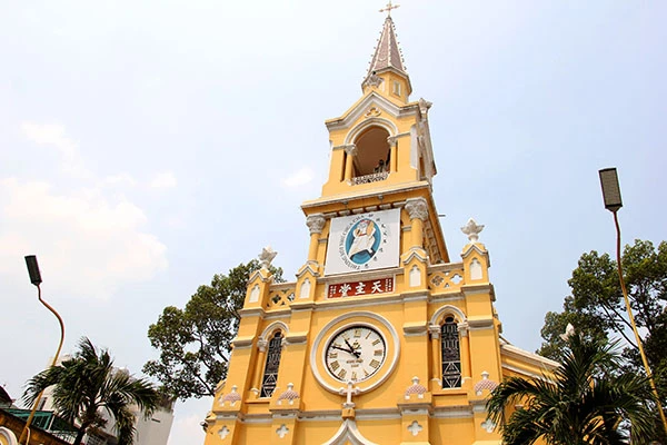 Nhà thờ được xây dựng theo phong cách Gothic nhưng do dành cho người Hoa nên cha Hướng đã lồng ghép nhiều yếu tố văn hóa Trung Hoa vào. Ảnh: HOÀNG GIANG