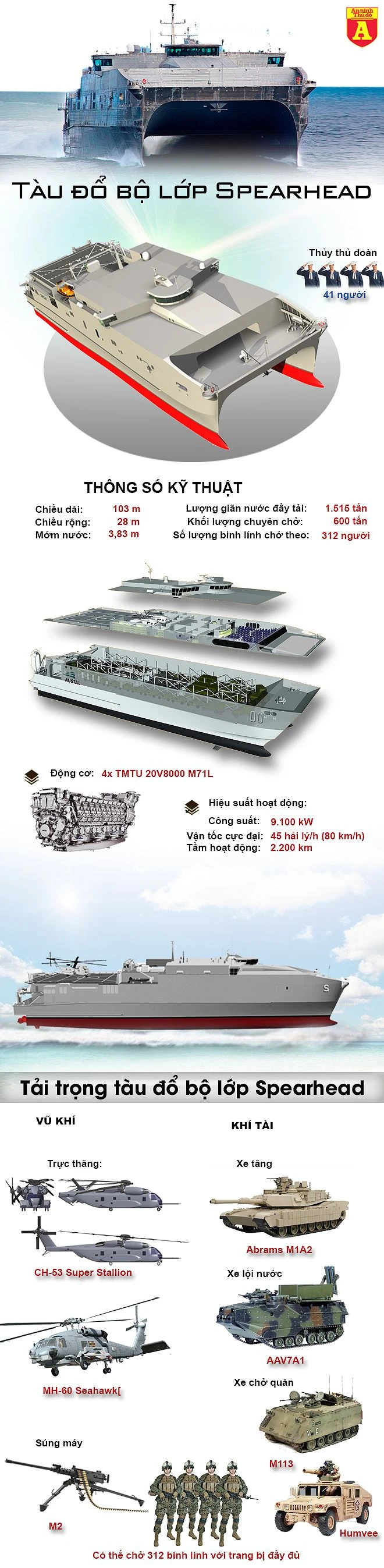 Tàu đổ bộ siêu tốc lớp Spearhead (JHSV) là một trong những tinh hoa mới của hải quân Mỹ. Chúng được phát triển và đưa vào biên chế vào năm 2010. Với thiết kế 2 thân độc đáo, loại tàu này có thể đạt vận tốc 80 km/h.