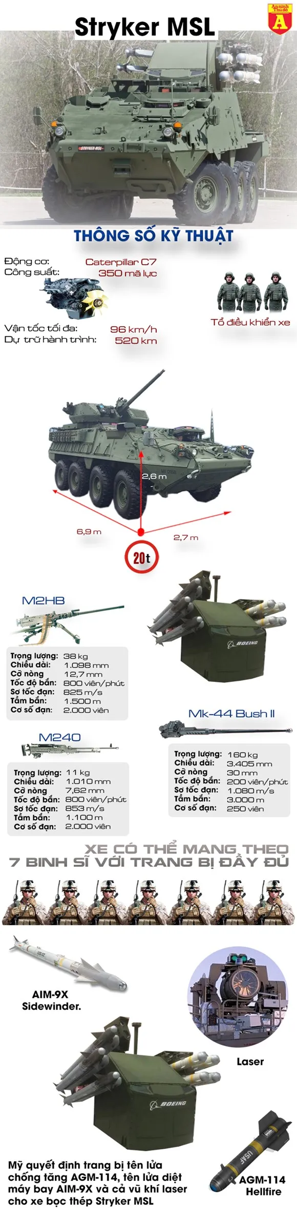 Mỹ vừa cho ra mắt siêu xe bọc thép Stryker MLS mạnh nhất hành tinh, không những tấn công bộ binh, xe bọc thép này còn có khả năng hủy diệt cả xe tăng lẫn máy bay chiến đấu.