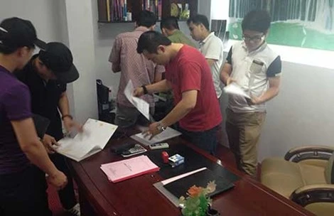Cảnh khám xét tại chi nhánh BBG trên đường Cao Thắng, quận 3, TPHCM. Ảnh: Yên Trang.