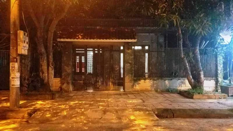 Cổ nhà ông Hòa khép lại và lực lượng cảnh sát đang khám xét bên trong.