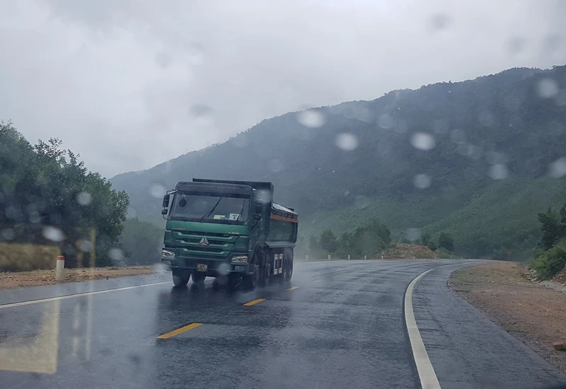Xe tải chạy "chui" trên cao tốc La Sơn - Túy Loan. Ảnh: TẤN VIỆT