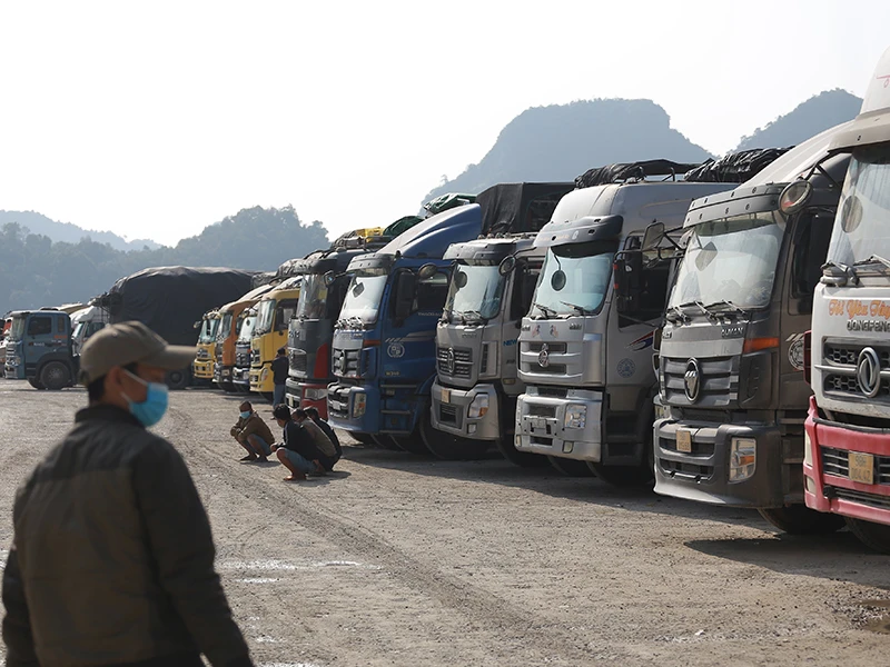 Hàng ngàn xe đang nằm chờ trên các cửa khẩu của tỉnh Lạng Sơn để chờ thông quan sang Trung Quốc. Ảnh: CTV
