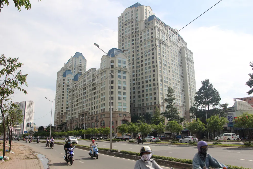 Đường Nguyễn Hữu Cảnh dài khoảng 3 km nhưng phải “cõng” gần 20.000 căn hộ. Ảnh: HOÀNG GIANG