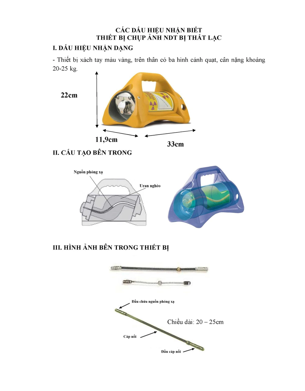 Ngày 12/9/2014, tại TPHCM có thất lạc thiết bị chụp ảnh NDT trong đó có chứa một nguồn phóng xạ có khả năng gây nguy hiểm đến môi trường và sức khỏe (hình ảnh đính kèm).