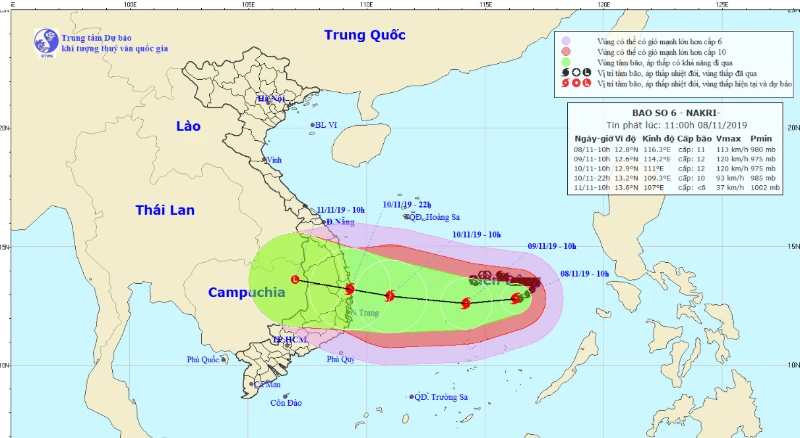 Vị trí và đường đi của bão số 6 ngày 8-11. Ảnh: NHCMF