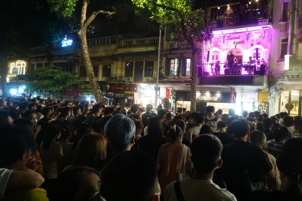 Đặc biệt, hôm nay là cuối tuần, phố đi bộ Hoàn Kiếm mở cửa nên thu hút rất đông người tập trung về đây. |