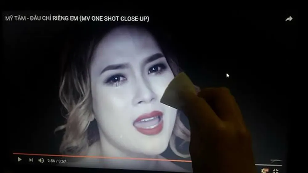 Hàng loạt khán giả hâm mộ ca sĩ Mỹ Tâm đã chụp màn hình khoảnh khắc Mỹ Tâm khóc trong MV cùng với tay thật của mình đang lau nước mắt cho người mình yêu quý.