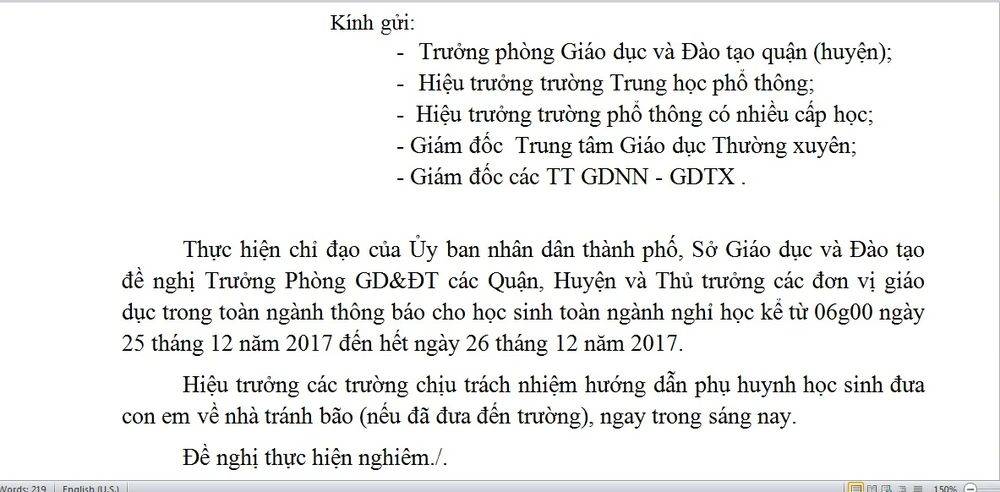 Nội dung công văn khẩn của Sở GD&ĐT TP.HCM sáng 25-12.