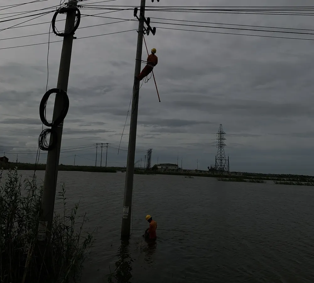 Điện lực Thừa Thiên Huế khắc phục sự cố điện sau bão số 5. Ảnh: CTV