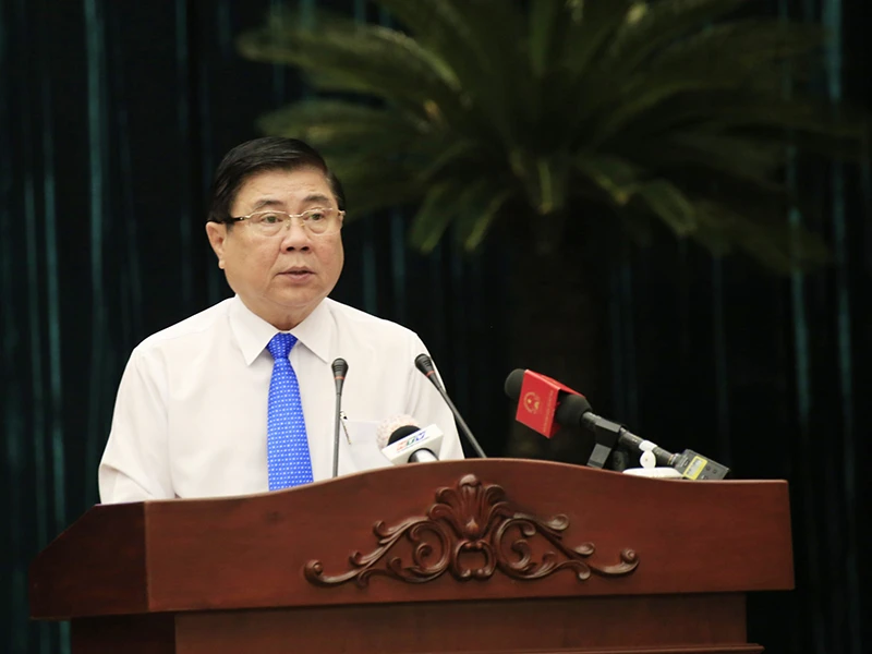 Chủ tịch UBND TP.HCM Nguyễn Thành Phong phát biểu tại hội nghị. Ảnh: TÁ LÂM