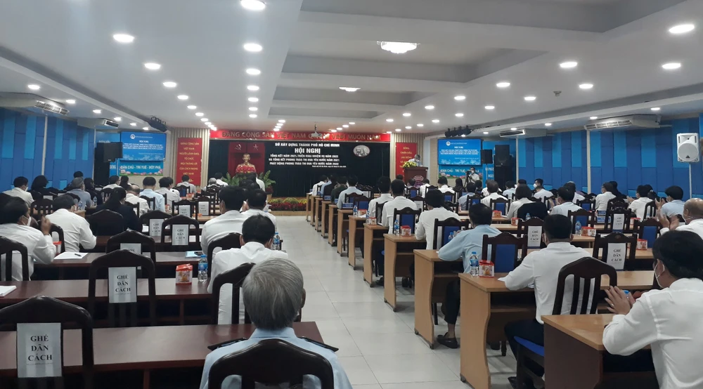 Toàn cảnh hội nghị tổng kết năm 2021, triển khai nhiệm vụ năm 2022 của Sở Xây dựng TP.HCM. Ảnh: KIÊN CƯỜNG