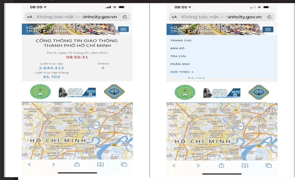 Bước 1: Sử dụng điện thoại thông minh hoặc máy tính truy cập website: http://giaothong.hochiminhcity.gov.vn.