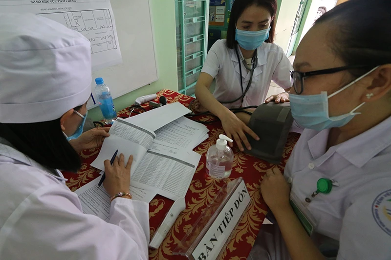 Khám sàng lọc các nhân viên y tế trước khi tiêm vaccine COVID-19. Ảnh: LX