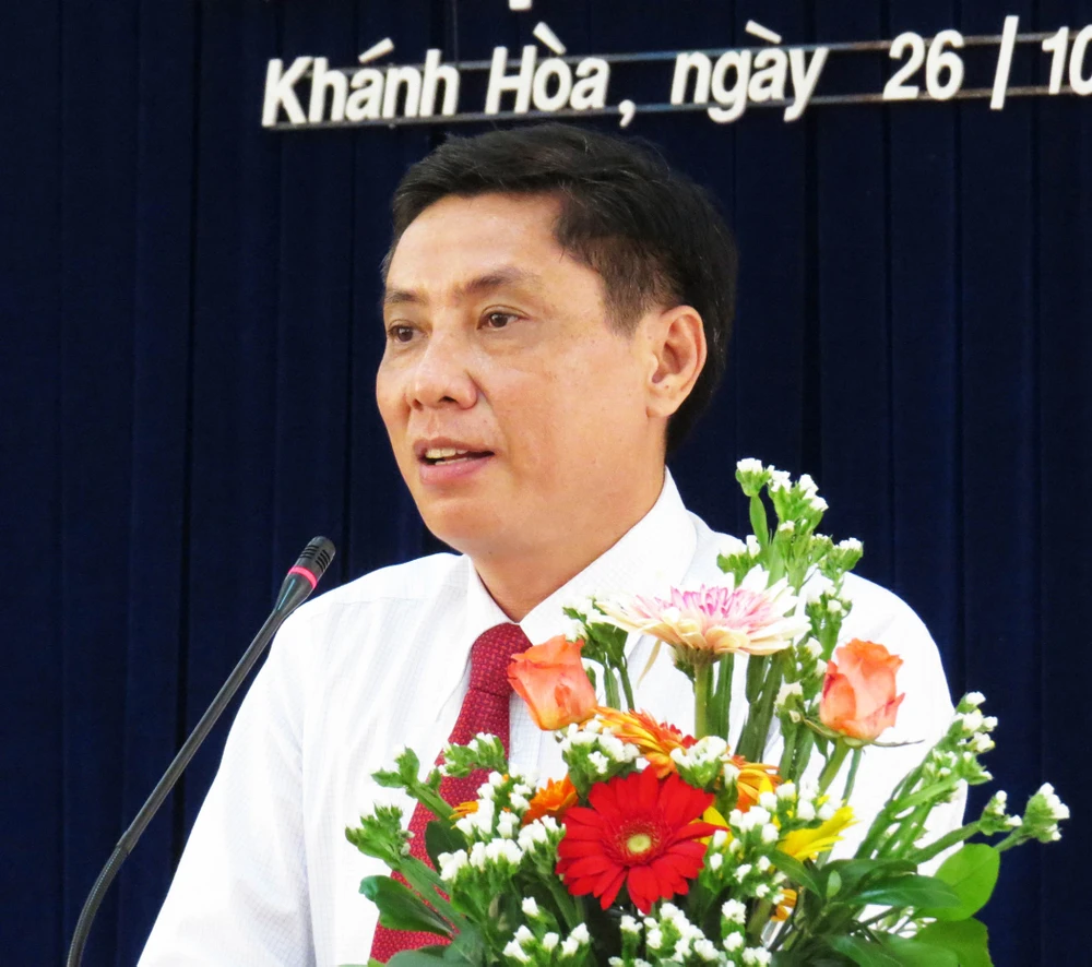 Phát biểu nhận nhiệm vụ mới, tân chủ tịch UBND tỉnh Khánh Hòa cam kết quyết tâm phấn đấu hết mình để lãnh đạo, điều hành bộ máy lãnh đạo chính quyền tỉnh xây dựng Khánh Hòa phát triển về mọi mặt.