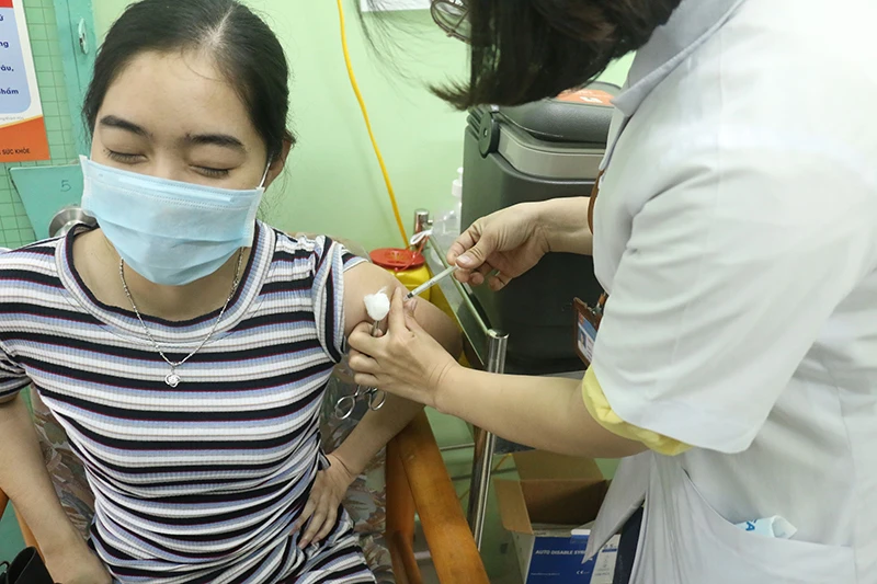 Nhân viên BV Bệnh nhiệt đới Khánh Hòa được tiêm vaccine COVD-19. Ảnh: LX
