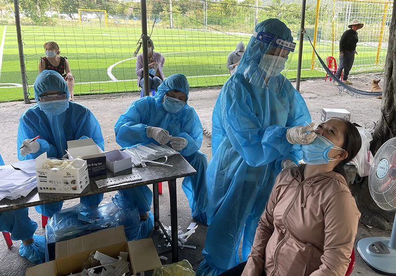 Lấy mẫu xét nghiệm sàng lọc tại TP Nha Trang. Ảnh: XN