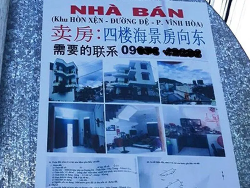Quảng cáo mua bán nhà, đất bằng tiếng Trung xuất hiện ở  TP Nha Trang. Ảnh: CTV