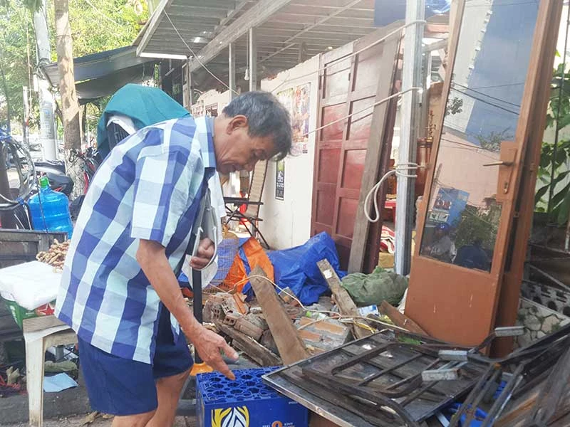 Không mua được gỗ vì TP Nha Trang có quá nhiều nhà bị hư hỏng, nếu sử dụng lại gỗ cũ sẽ không an toàn nên gia đình ông mua sắt hộp làm trụ, khung để lợp lại mái tôn trong phần tường nhà còn lại làm nơi tạm trú và không hề có ý định xây dựng kiên cố, tăng giá trị bồi thường khi giải tỏa mà chỉ để giải quyết nhu cầu chỗ ở trước mắt.