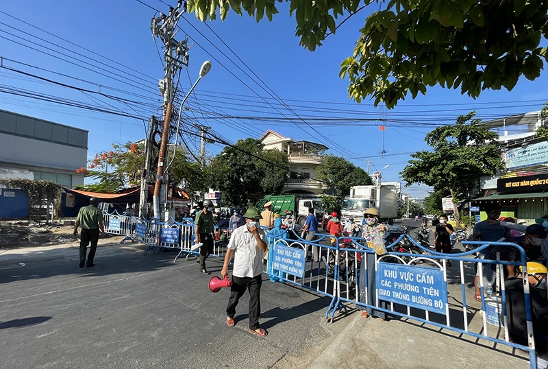 Phong tỏa khu vực có người mắc COVID-19 ở xã Phước Đồng, TP Nha Trang, Khánh Hòa. Ảnh: XN