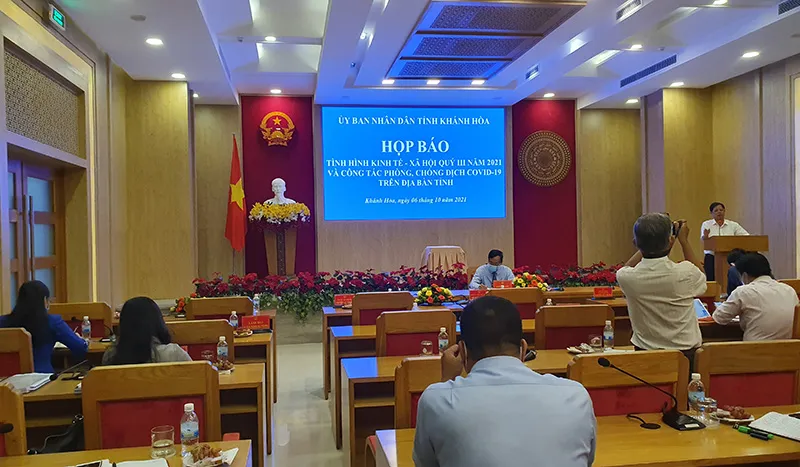 UBND tỉnh Khánh Hòa họp báo chiều 6-10. Ảnh: TẤN LỘC
