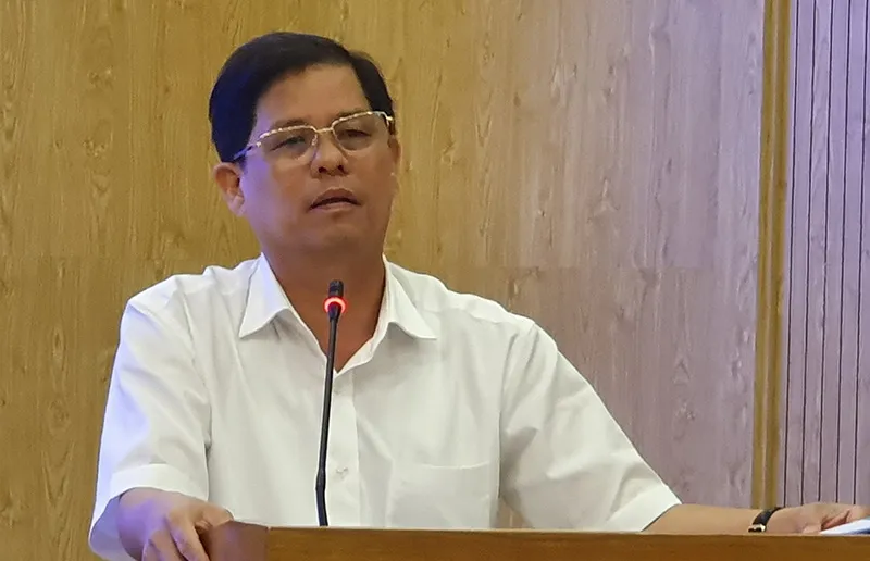 Ông Nguyễn Tấn Tuân, Chủ tịch UBND tỉnh Khánh Hòa thông tin tại cuộc họp báo. Ảnh: TẤN LỘC