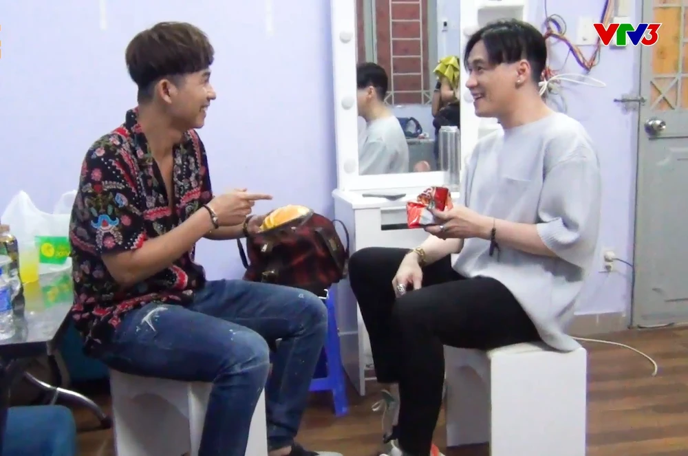 Nam ca sĩ còn “hào phóng” chia sẻ “chiến lợi phẩm” này cùng người bạn tri kỷ của mình là Châu Gia Kiệt. Cả hai “đốn tim” cộng đồng mạng với hình ảnh vui vẻ khi chia nhau một gói bim bim ăn lót dạ trước khi ghi hình.