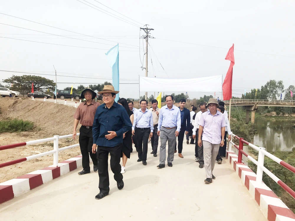 Nguyên Chủ tịch nước Trương Tấn Sang và các đại biểu tham quan các cây cầu mới.