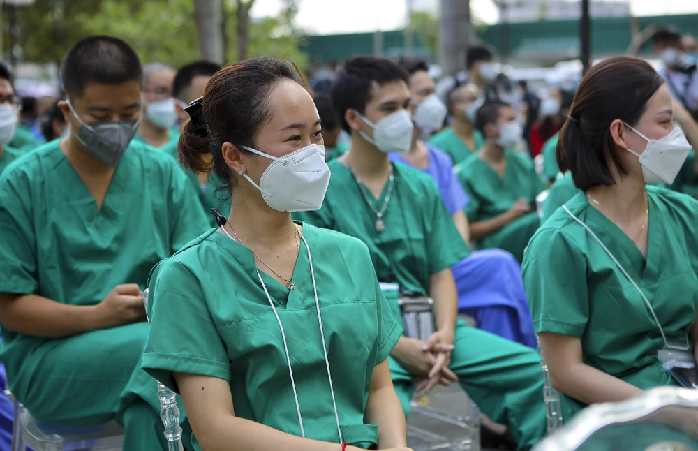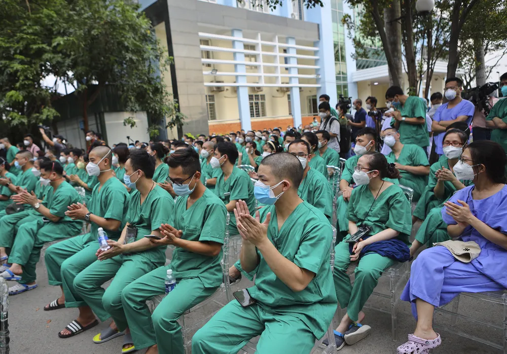Nhân viên Y tế các bệnh viện thể hiện lòng quyết tâm giúp TP.HCM chống dịch.
