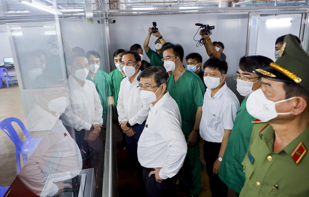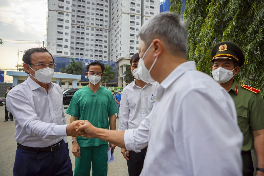 "Từ cuối tháng 6-2021, thành phố đã chủ động thành lập các bệnh viện dã chiến điều trị COVID-19; đặc biệt, trong vòng 20 ngày thành phố đã xây dựng xong 3 bệnh viện dã chiến 13, 14, 16 và chỉ trong vòng 1 tuần đã phối hợp với Bộ Y tế thành lập xong 3 trung tâm hồi sức. Đến nay, toàn thành phố đã có 15 bệnh viện dã chiến; 42 bệnh viện, cơ sở điều trị đưa vào hoạt động với quy mô gần 45.000 giường" - Chủ tịch UBND TP.HCM Nguyễn Thành Phong nói.