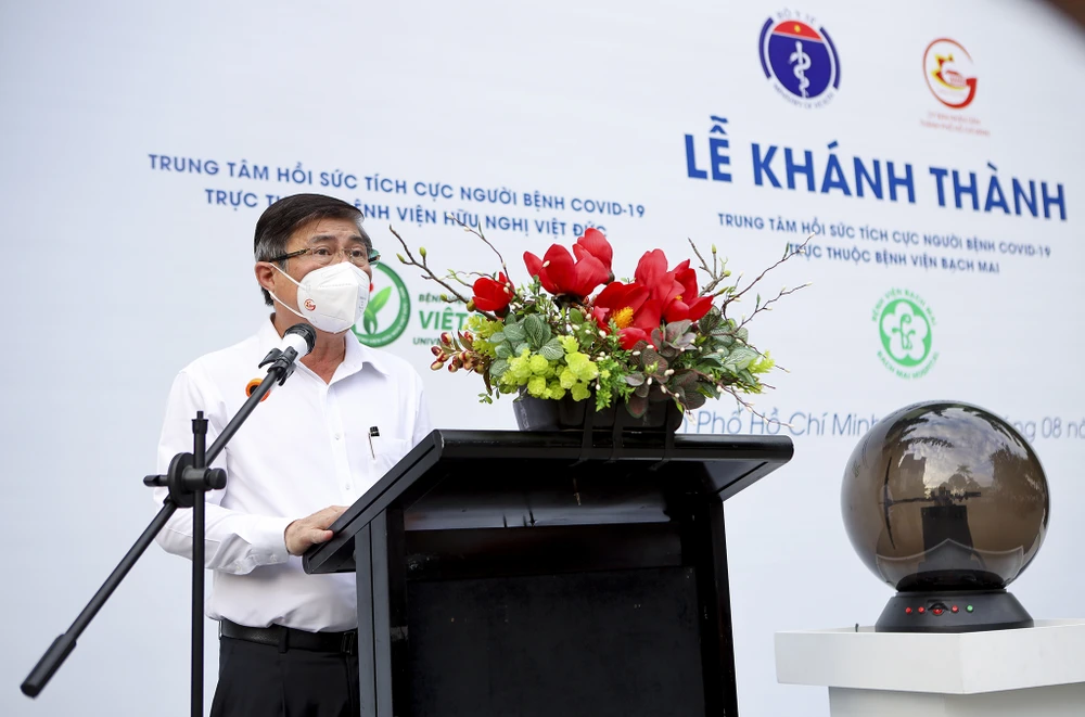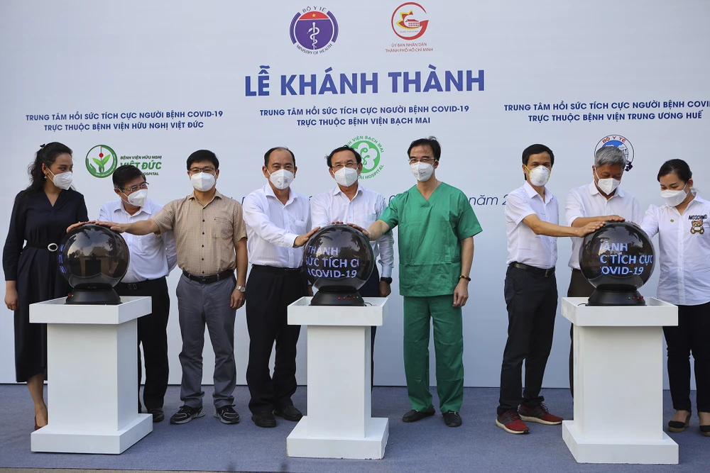 Chiều 7-8, UBND TP.HCM phối hợp với Bộ Y tế tổ chức buổi khánh thành 3 trung tâm hồi sức tích cực COVID-19 tại TPHCM thuộc quản lý của Bệnh viện Bạch Mai, Việt - Đức và Trung ương Huế.