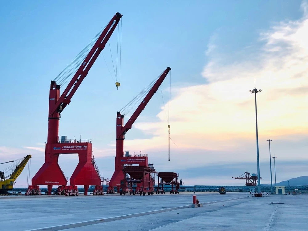 Cảng Quốc tế Vĩnh Tân được khởi công giữa tháng 4-2015, có tổng diện tích hơn 141 ha diện tích mặt nước, trong đó khoảng 51 ha diện tích mặt nước san lấp phục vụ xây dựng kho bãi, hạ tầng giao thông nội bộ cảng, dịch vụ cảng. Khoảng 90 ha diện tích mặt nước được sử dụng để làm diện tích khu mặt nước của cảng (gồm công trình thủy công, khu mặt nước trước bến, khu quay trở tàu, luồng tàu…).