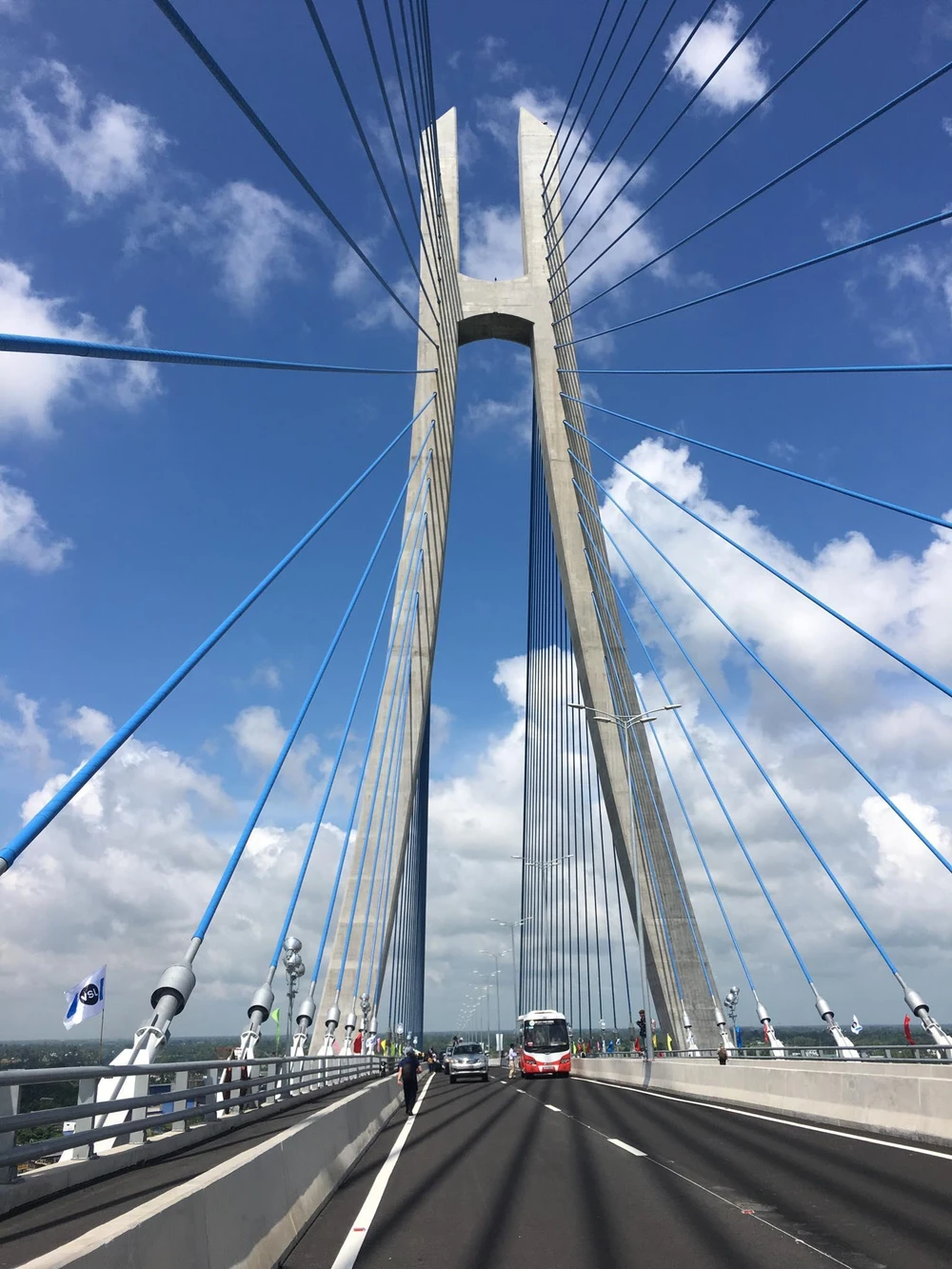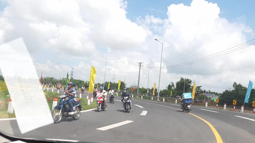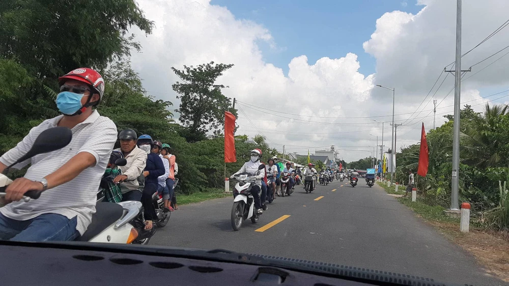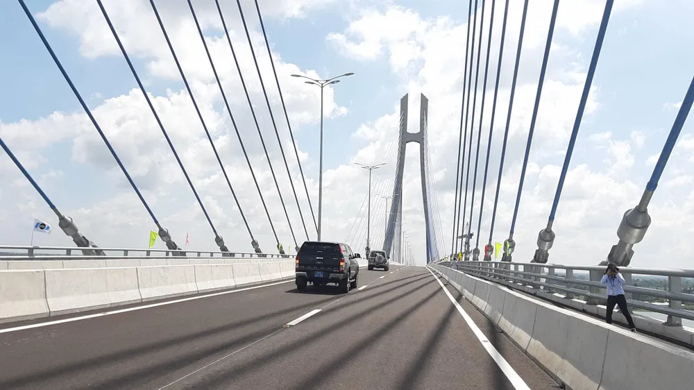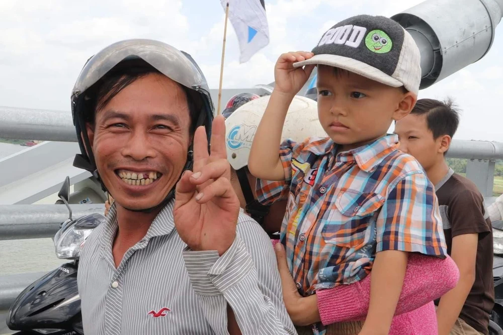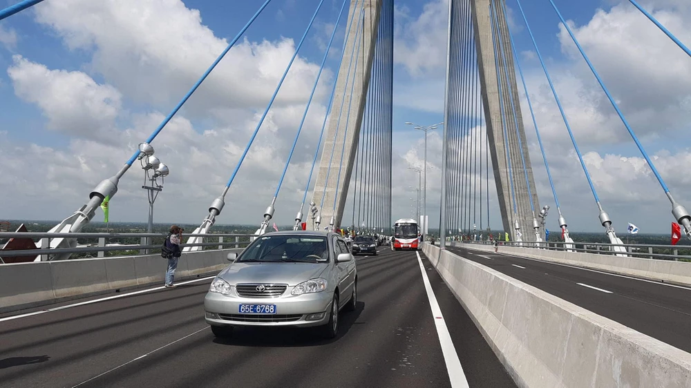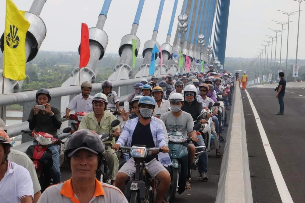 Người dân phía bờ Đồng Tháp háo hức di chuyển qua cầu Vàm Cồng để qua bờ Cần Thơ.
