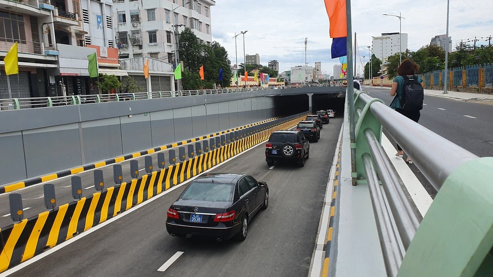 Những dòng xe đầu tiên lưu thông qua hầm chui của dự án. Ảnh: TẤN VIỆT