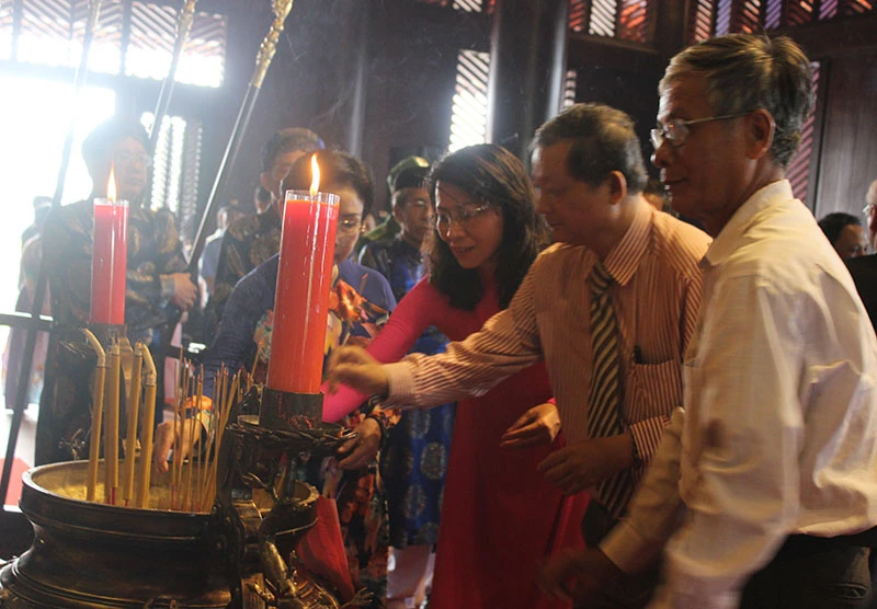Các lãnh đạo TP dâng hương tưởng nhớ công đức vị thành hầu.