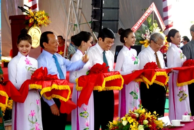 Chủ tịch nước Trương Tấn Sang, nguyên Chủ tịch nước Trần Đức Lương cùng nhiều lãnh đạo cấp cao của TP.HCM đã cắt băng khánh thành Dự án cải tạo kênh và đường dọc kênh Tân Hóa - Lò Gốm.