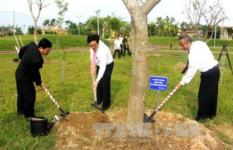 Viện trưởng VKSND Tối cao Nguyễn Hòa Bình (giữa) và Chủ tịch Tổng Liên đoàn Lao động Việt Nam Đặng Ngọc Tùng dự buổi lễ và tham gia trồng cây lưu niệm tại khuôn viên Khu lưu niệm cố Thủ tướng. Ảnh: TTXVN