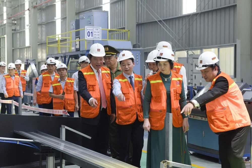 Lãnh đạo Tập đoàn Hoa Sen và tỉnh Yên Bái thăm dây chuyền sản xuất ống thép tại Nhà máy VLXD Hoa Sen Yên Bái.