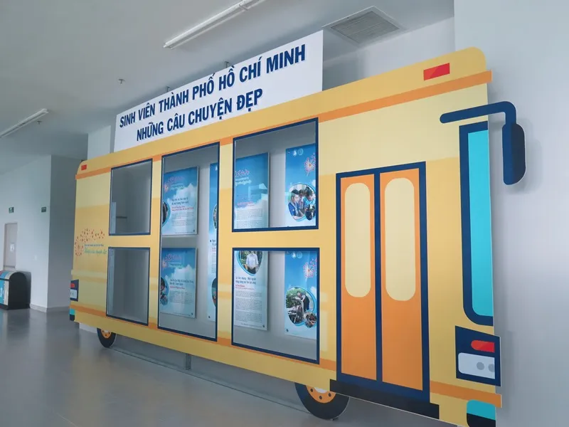 Bảng tin thiết kế dạng mô hình xe buýt dành tôn vinh những câu chuyện đẹp của các sinh viên.