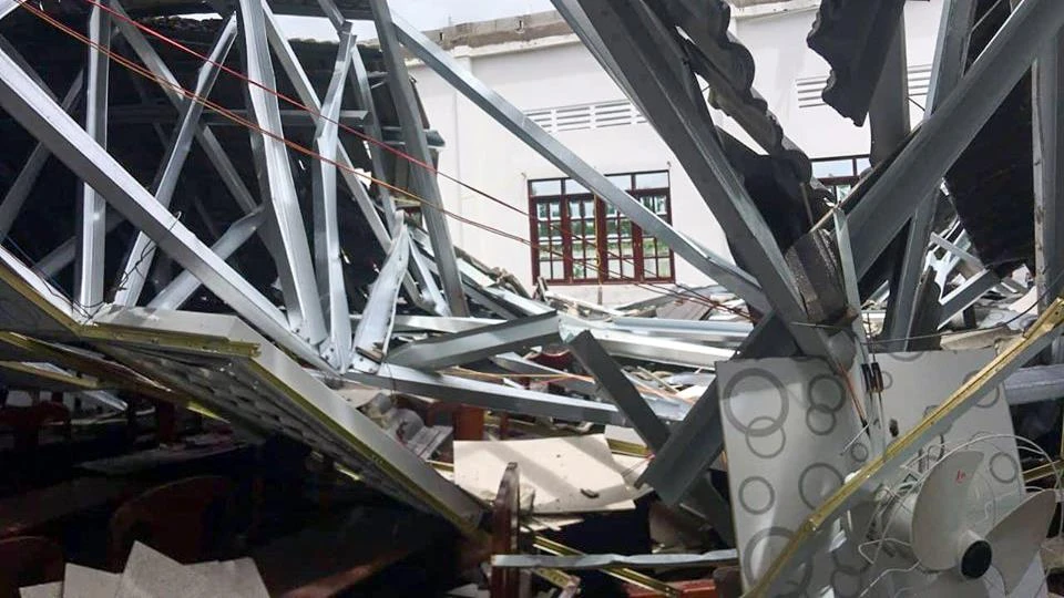 Hiện trường sự cố sập mái tại Hội trường UBND thị trấn Ngã Sáu